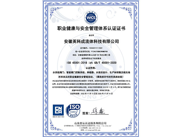 • 職業健康安全管理體系認證證書